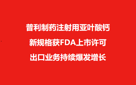 【喜訊】普利制藥注射用亞葉酸鈣新增規(guī)格近日獲美國FDA上市許可!出口業(yè)務(wù)持續(xù)爆發(fā)增長