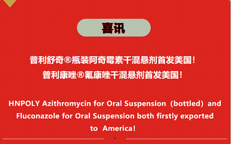 浙江普利(海南普利(300630)全資子公司)制造的阿奇霉素和氟康唑干混懸劑,首發(fā)美國