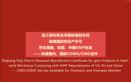 浙江普利藥業(yè)半固體制劑車間新增凝膠劑生產(chǎn)許可,可符合美國、歐盟、中國GMP標(biāo)準(zhǔn)——承接國內(nèi)、國際CDMO/CMO合作