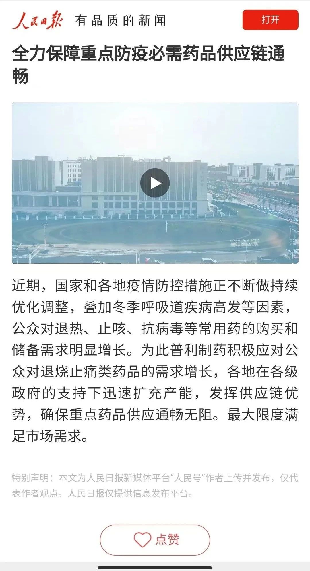 人民日報為普利制藥點(diǎn)贊!