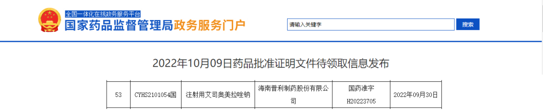 普利制藥的注射用艾司奧美拉唑那成功研發(fā)后,分別遞交美國(guó)、歐洲和中國(guó)的仿制藥注冊(cè)申請(qǐng)。2022年2月獲得美國(guó)食品藥品監(jiān)督管理局(FDA)批準(zhǔn)上市,2022年3月獲得荷蘭的上市許可。