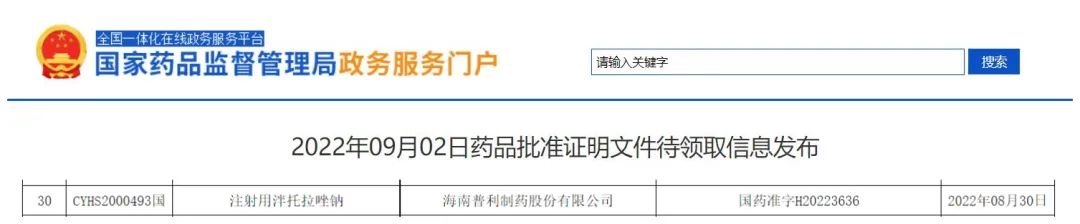 8月30日,普利制藥生產(chǎn)的普利泮妥?注射用泮托拉唑鈉通過國(guó)家藥監(jiān)局審批,視同通過一致性評(píng)價(jià)批準(zhǔn)上市。