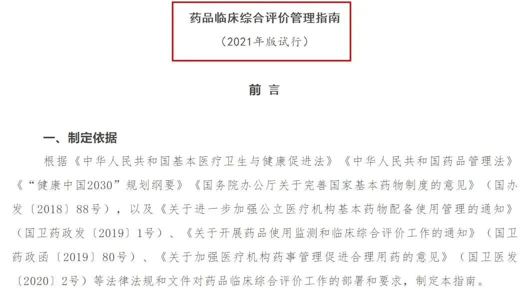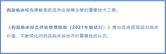藥品臨床綜合評價(jià)以人民健康為中心,以藥品臨床價(jià)值為導(dǎo)向,利用真實(shí)世界數(shù)據(jù)和藥品供應(yīng)保障各環(huán)節(jié)信息開展藥品實(shí)際應(yīng)用綜合分析,探索建立并逐步完善基于政策協(xié)同、信息共享,滿足多主體參與、多維度分析需求的國家藥品臨床綜合評價(jià)機(jī)制。