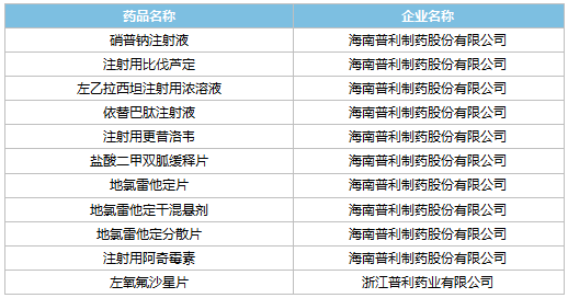 表1:普利制藥通過(guò)/視同通過(guò)一致性評(píng)價(jià)產(chǎn)品清單