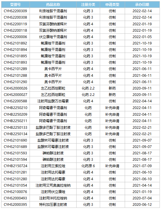 表2:普利制藥正在審評(píng)產(chǎn)品清單