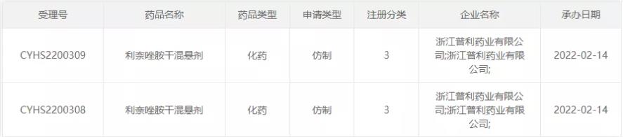 22月14日,浙江普利藥業(yè)按仿制3類申報的利奈唑胺干混懸劑上市申請獲得CDE承辦受理,目前國內(nèi)尚無企業(yè)獲批生產(chǎn)該品種,浙江普利為首家申報上市的企業(yè)。