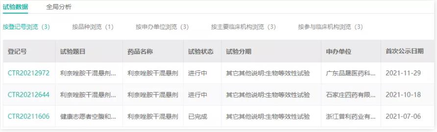 干混懸劑屬于口服混懸劑的一種,將難溶性藥物與適宜輔料制成粉狀物或粒狀物,臨用時加水振搖即可分散成混懸液供口服的液體制劑。浙江普利藥業(yè)是首家申報利奈唑胺干混懸劑上市的國內(nèi)藥企。據(jù)藥融云查詢,石家莊四藥和廣東品晟醫(yī)藥也在開展該品種的生物等效性試驗。